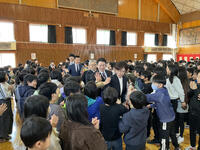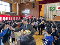 離任式では、転退任する先生方から子供たちに、思いを込めたお別れの言葉が伝えられました。話を聞く子供たちから、自然と拍手が湧き上がりました。