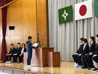 紹介式では、児童会長が新しく来た先生方に、「やさしく思いやりのある私たちになんでも聞いてください。」と話し、歓迎の気持ちを伝えました。また始業式では、校長先生から「お友達のよいところを見つけましょう。」というお話があり、校長先生の目を見てお話を聞く子供たちの姿が見られました。