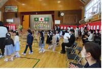 式では、担任の先生の呼名にはっきりと返事をしたり、目を見て校長先生のお話を聞いたりする姿が見られました。また、6年生のお祝いの言葉や校歌を聞き、笑顔も見られました。