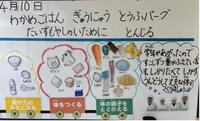 先週から学校給食がスタートしました。1年生にとっては、初めての給食でしたが、残さずきれいに食べる姿が見られました。給食室の先生が心を込めて作った給食を、これからもおいしく味わって欲しいと思います。